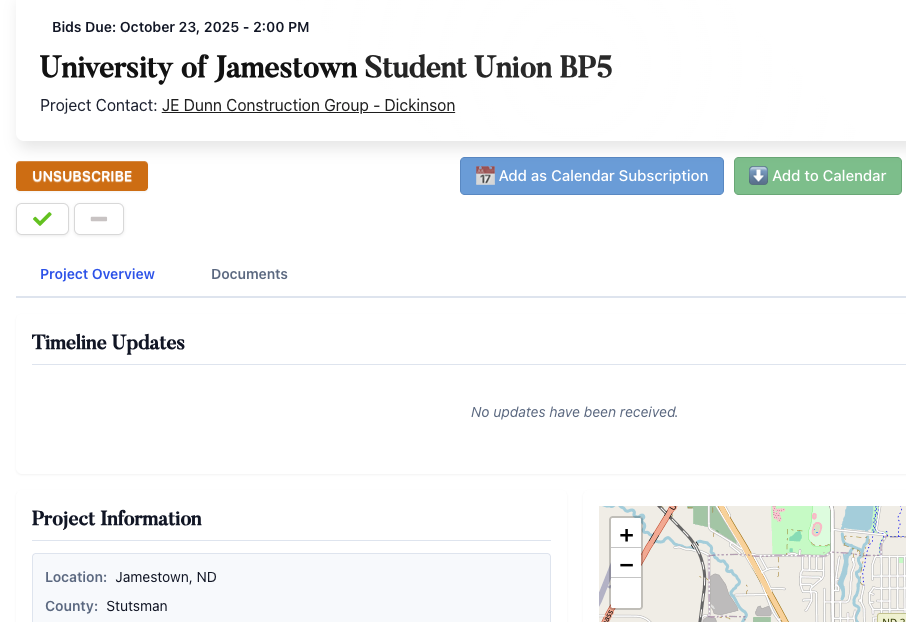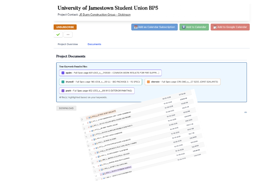 Stays automatically up to date — when a bid date changes, your calendar will reflect the change